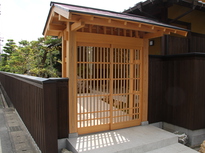 石組と松の多い庭も完成しました。塀と門も同時に建ちました。