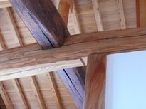 普通の大壁の新築住宅でも古材を2,3本組込むだけでも良い効果が出ます。如何ですか。